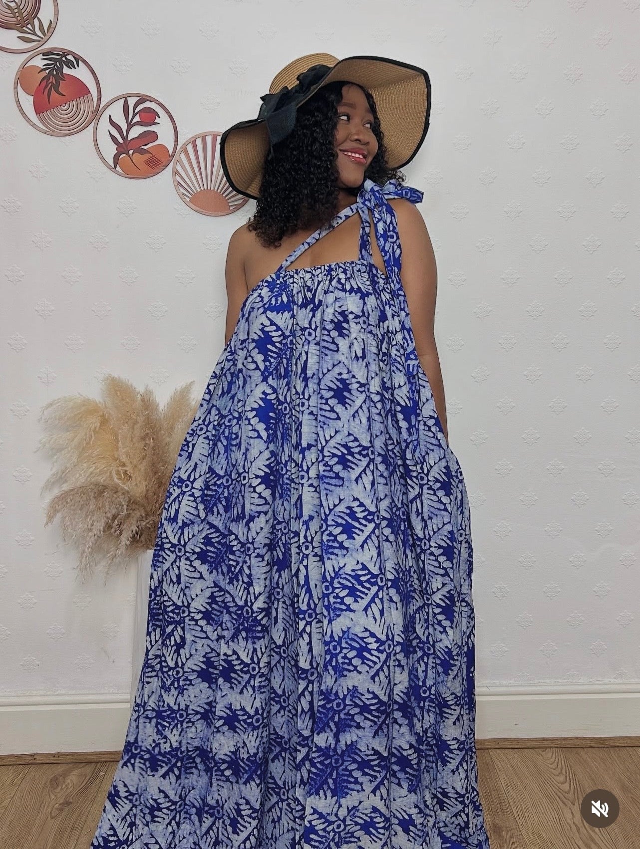Inspired by the beauty of ocean tides. A flowy blue Adire masterpiece that flatters every body.